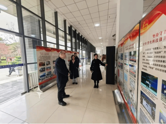 随后,刘洋一行观摩了学院美育成果展览,听取了学院团委书记李妮所作的题为“高举团旗 跟党走 挺膺担当建新功”西铁院共青团工作巡礼成果展的汇报。实地参观了校史馆、轨道交通专业综合实训中心、铁路精神文化主题教育专列、学院党建文化长廊、国家级仿真实训等基地以及“一站式”学生社区。