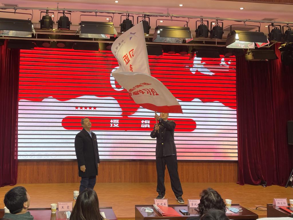 随后,指导教师代表宣读了“新时代学习社”章程,对学习社的成立宗旨、组织机构、学员制度进行了详细地介绍。全体学员在学员代表马东旭的带领下进行宣誓,铮铮的誓言代表了学员们学习新思想,宣传新理论;遵守章程,践行社规的信心与决心。景延鹏向2020级新学员授“新时代学习社”社旗。旗帜既是青年学子的责任与使命,也寄托着马院对新一届学员的期望与祝福。毛特概论与形策教研室主任邢卫红代表指导教师向新学员代表颁发了“新时代学习社”学员证书,鼓励新学员在入社后不忘初心、脚踏实地、认真做事,不断提升理论功底和综合素养。