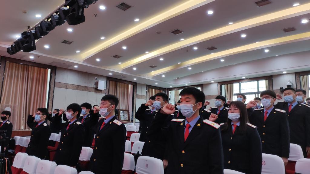 入社仪式结束后,在2020年西安市首届市属高校“大学生讲思政课”比赛中获得一等奖的任敏、赵佳蕊、李宇聪三位同学进行了获奖作品展示。他们新颖的课堂设计、自信流畅的表达赢得了阵阵掌声,彰显了贝博官网学子的理论素养和精神风貌,体现了贝博官网思政育人的显著成效。