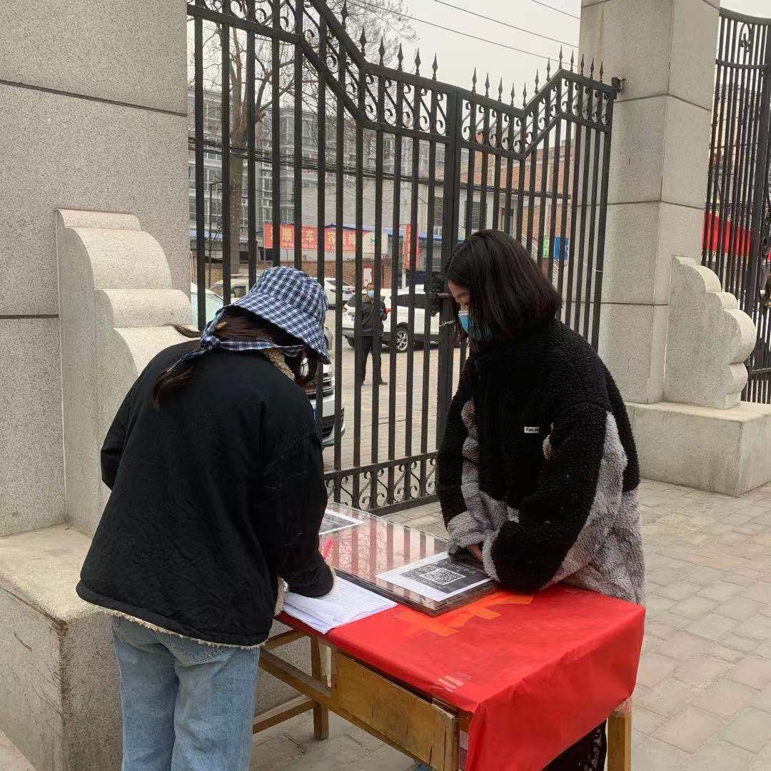 河北省保定市徐水区义联庄乡西丁庄村:机电工程学院动车组检修技术专业2001班的崔梦同学,刚返回家乡后,就投入到了所在村的疫情防控工作,已经累计志愿服务时长100余小时,每天定时、定点在防控疫情站点站岗,对过往车辆和人员进行登记、测量体温。她带头学习科学防疫知识,不传谣、不信谣,并进行防疫知识的宣传工作,以青春之声弘扬青春正能量。