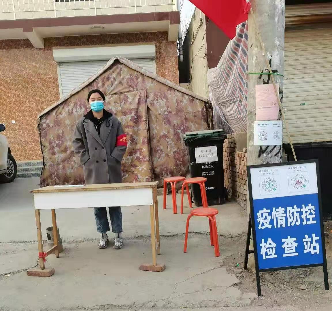 陕西省渭南市白水县委家属院:电子信息学院城轨通号1901班的石含玉同学,1月17日正式加入了白水县疫情防控志愿者队伍,在做好个人自身防护的前提下,在所在小区为进出人员进行测体温,扫健康码,统计相关信息,协助检查站点做好执勤登记工作。