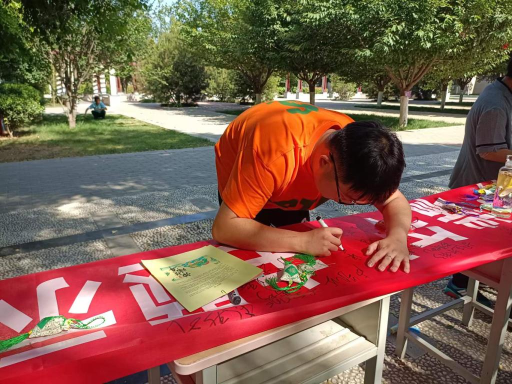 活动中,同学们向过往师生发放精心设计的关于端午节传统文化知识的宣传单,通过介绍端午节的由来、纪念屈原说、端午节民俗活动与端午节知识小百科,进一步提升同学们对我国传统文化节日的了解与对中国传统文化的认同感。院团委预先为大家准备了香包、艾草、彩线、布料等,同学们在现场领取材料包后,开始DIY手工制作艾草香包。经过缝制和添加香料等一系列步骤后,一个个精美的香包呈现在大家面前,活动现场弥漫着淡淡香味,洋溢着阵阵欢声笑语,同学们共同感受着传统文化的魅力。并为过往师生们送上象征着吉祥安康的五彩绳和香包,并邀请师生在横幅上写下自己的签名,为大家送上端午安康的祝福。活动最后,同学们朗诵了《史记·屈原列传》节选,向这位伟大爱国诗人表达了缅怀与追念,再现了屈原的拳拳爱国心,弘扬了热爱祖国、热爱人民的伟大爱国主义精神。