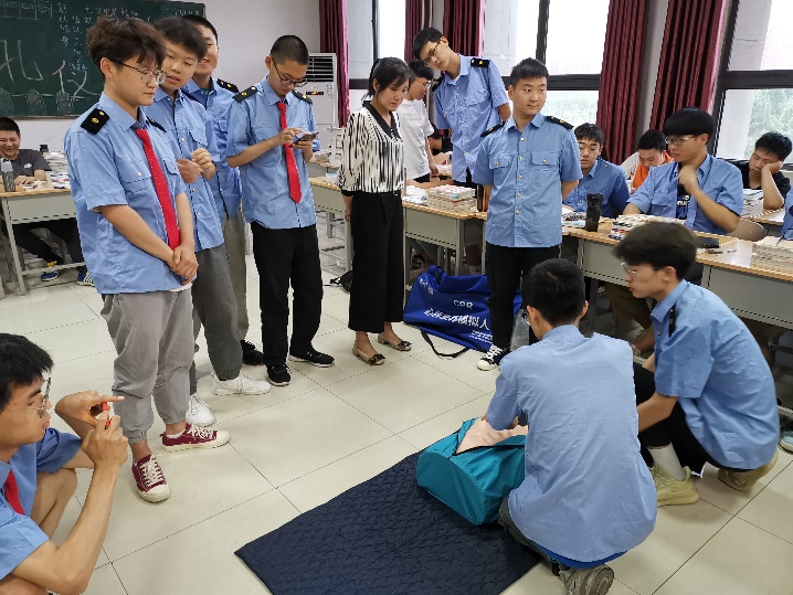 本次活动由铁路行业存在人流量大,突发事件发生率高这一显著特点出发,分析了掌握应急救护知识的重要性,从常见的意外伤害等开始入手,利用仿真假人详细讲解心肺复苏、人工呼吸的动作要领和注意事项,并为各班同学讲解和演示了一次完整救助的详细流程。