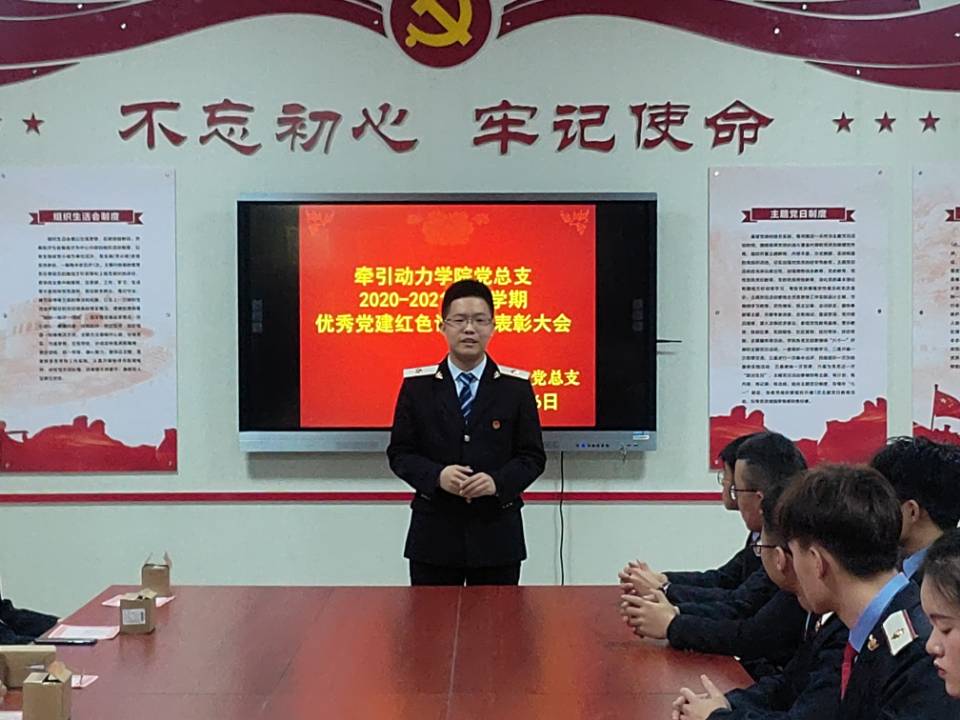 辅导员杨若宣读了牵引动力学院党总支《关于表彰2020-2021年第一学期优秀党建讲解员的决定》。