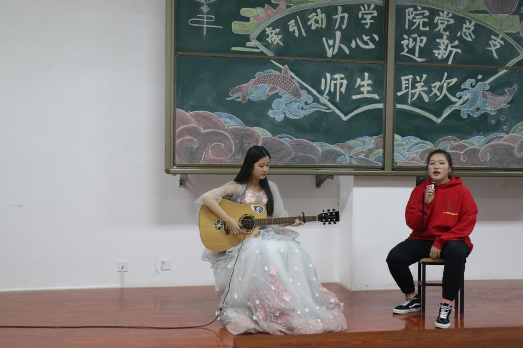 师生联欢会上,和晋秦致辞并宣布活动开始,她向全院师生表达了2019的节日祝福,对所有教师、辅导员、班主任和学生在2018年辛勤付出、默默奉献表示由衷感谢!她说,极不平凡的2018即将逝去,大有作为的2019正在扑面走来。在年尾迎新之际,让我们致敬2018——辞旧送旧,迎接2019——迎新庆新,在新的一年不忘初心,永怀真心诚心,倾注爱心热心,用汗水渲染华章,用奋斗铸就辉煌,把每一天都过得顺心、称心、开心、欢心!