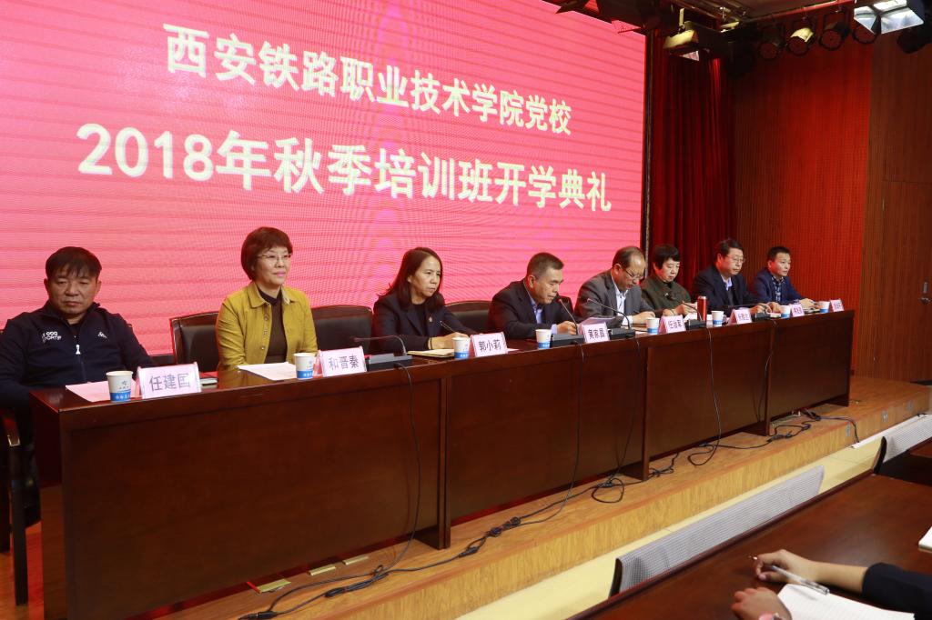 开学典礼上各分党校校长宣读了新修订的西铁院党校《学员管理办法》和学院党校2018年秋季培训班课程安排。其中授课十讲,内容分别是:中国共产党的光辉历程和伟大成就,中国共产党的性质和宗旨,中国共产党的指导思想,中国共产党的最高理想和现阶段的奋斗目标,中国共产党的组织制度、纪律和作风,共产党员的权力和义务,入党的基本条件和程序,以实际行动争取做一名合格的共产党员,共产党人应牢固树立社会主义核心价值观,维稳与青年成长。