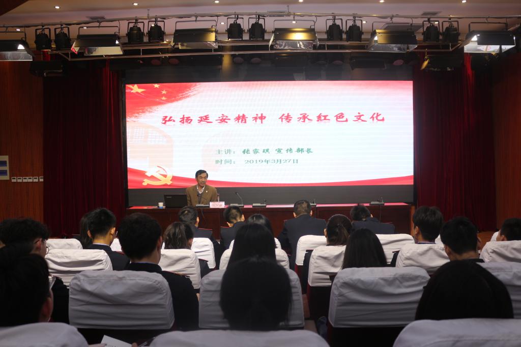 3月27日,学院党委宣传部部长张家琪在港务校区学术报告厅为第七期青年马克思主义者(大学生骨干)培训班学员进行题为“弘扬延安精神,传承红色文化”的专题讲座。
