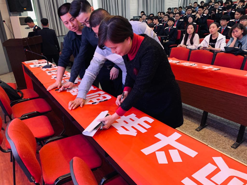 铁道信号1802班学生周刚代表全体同学庄严承诺,要严守校规校纪,遵纪守法,做合格大学生,为建设平安校园,构建校园安全贡献一份力量。