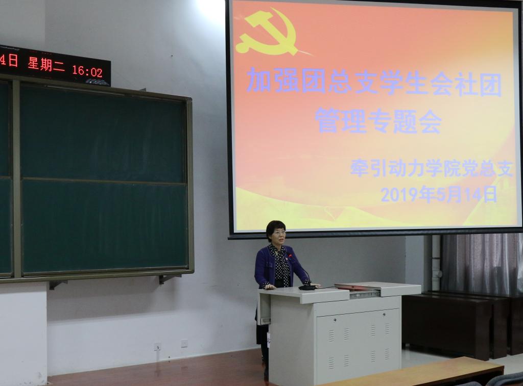 5月14日,牵引动力学院党总支在阶梯教室召开加强团总支学生会社团管理专题会。党总支书记和晋秦主持会议,全院专兼职辅导员、班主任、团总支、学生会及社团干部100余人参会。