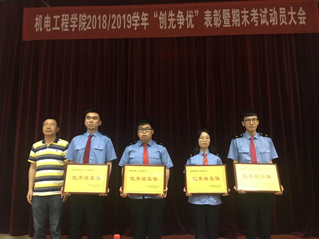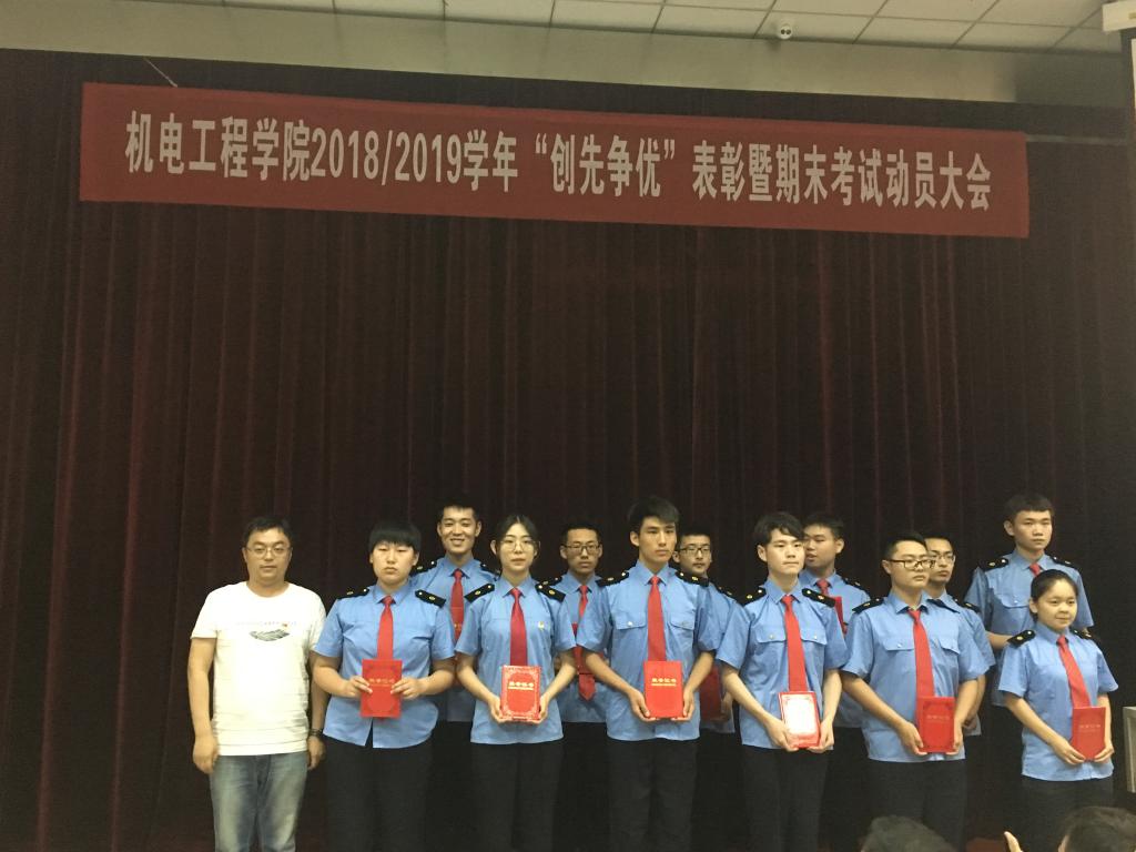 6月19日下午,机电工程学院在一楼阶梯教室举办了2018-2019学年“创先争优”表彰暨期末考试动员大会。机电工程学院党总支书记张雅兰、办公室主任邵泽宽、学工办主任谷茂庆、全体辅导员、班主任老师以及受表彰的先进集体和优秀个人代表200余人参加了本次会议。
