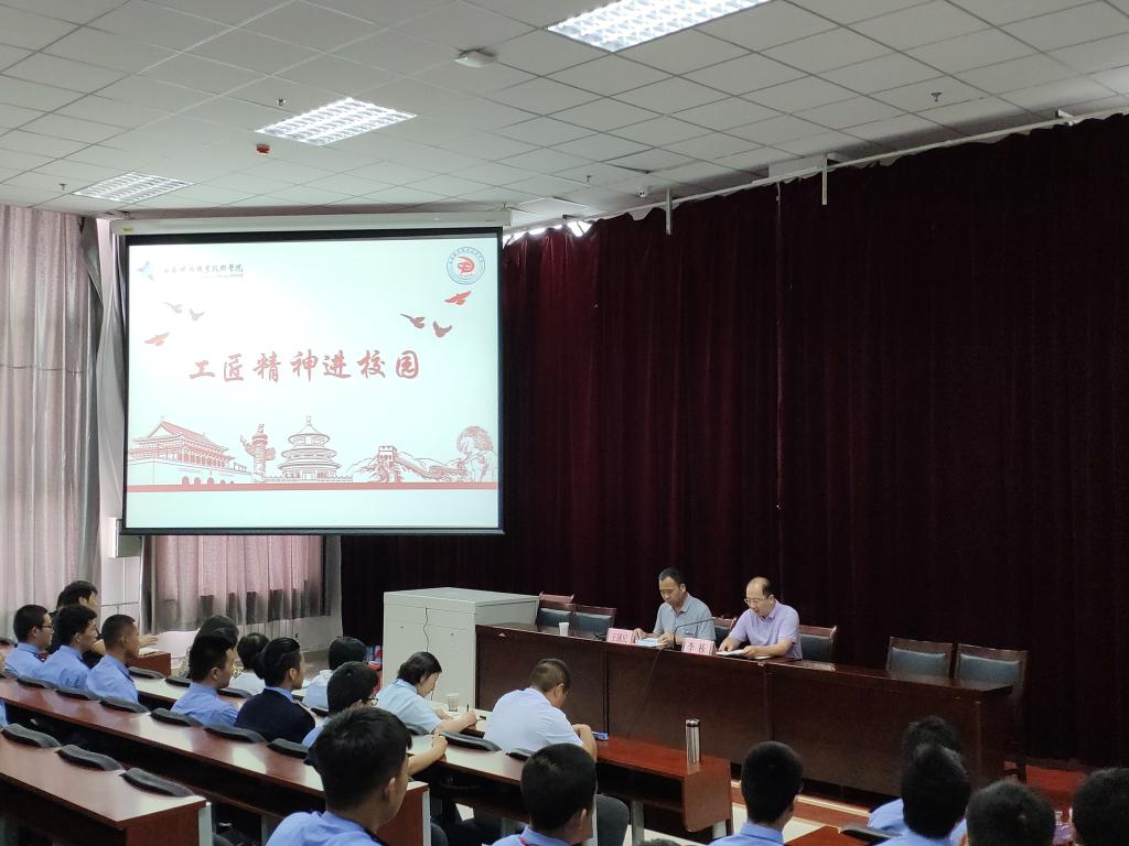 王蒲民在讲座中结合自己的经历向师生们讲述了自己理解的工匠精神就是工作态度上一丝不苟、生产质量上精益求精、职业精神上持之以恒。工匠精神需要在师生们的教学中培育并逐步形成,更需要我们从教育源头加以培育,同学们要在学校期间养成吃苦耐劳、精益求精、勇于创新成的品质。