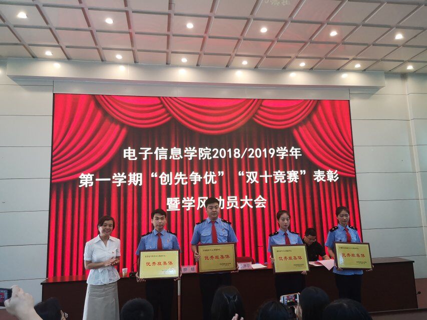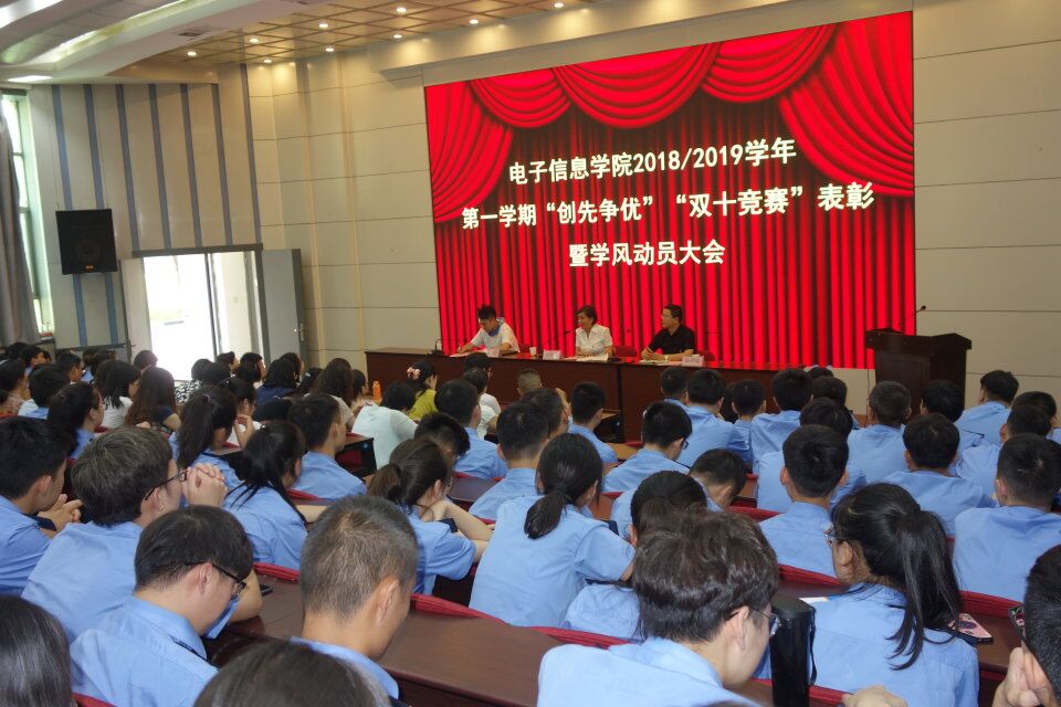 6月26日,电子信息学院在自强校区阶梯教室隆重举行了第十届科技文化活动月表彰大会及2018—2019年第一学期“争先创优”“双十竞赛”表彰暨学风动员大会,电子信息学院院长孙津平、党总支书记张伟敏、学工办主任薛明以及教研室、学工办老师和获奖学生代表参加本次活动。