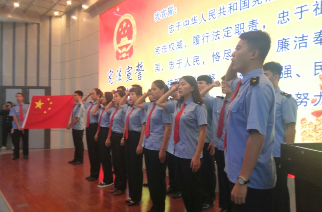 接着由2019年发展对象阴博涛同学带领全体发展对象及师生向宪法庄严宣誓,“我宣誓:忠于中华人民共和国宪法,维护宪法权威……”宪法宣誓不仅是庄严的仪式,更鼓舞了大家捍卫宪法的意志和决心。