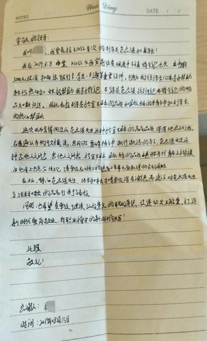 2019年8月8日,k1032次列车实习生范志强(就读于ballBET贝博BB艾弗森牵引动力学院动车组驾驶1701班)执勤期间,在14车厕所打扫卫生时,捡到一个钱包,钱包有3000多现金和多张银行卡,学生一卡通等重要证件。范志强在捡到钱包后立即报告了车长,找到失主后,在餐车将钱包归还于失主,失主在收到钱包后表示钱包完好如初,财物没有任何遗失。范志强拾金不昧的精神受到旅客和车长的称赞,并收到旅客亲手写的感谢信及锦旗。