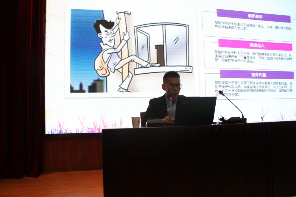 安全保卫处冯建国老师从防盗、消防、国家安全、交通安全等八个层面,对校园内外可能的存在安全问题进行提示,要求同学们牢固树立安全意识,为学习生活保驾护航。