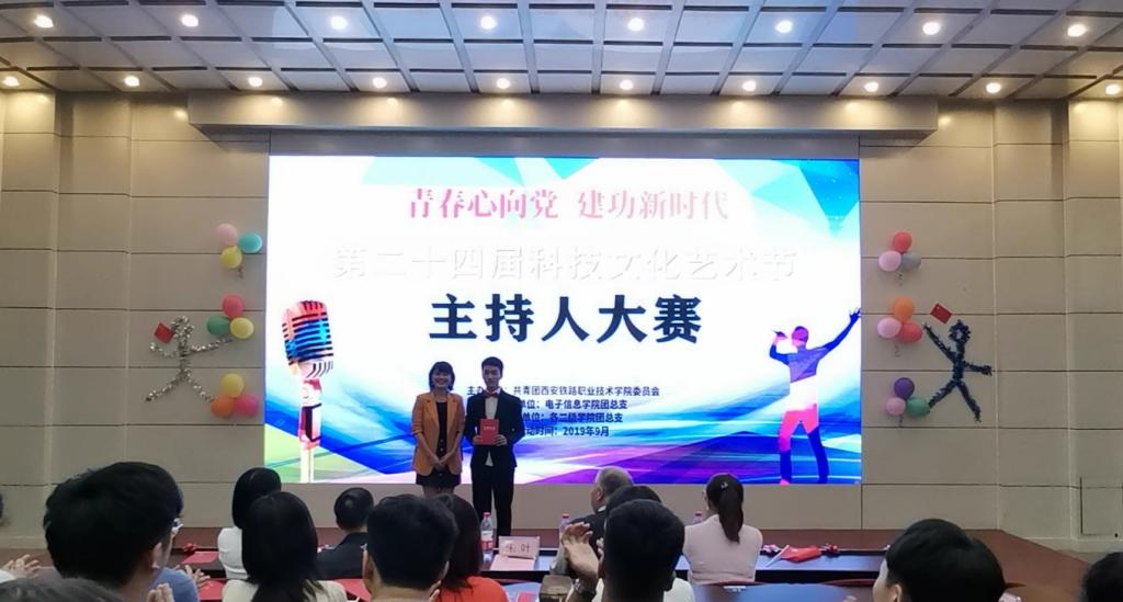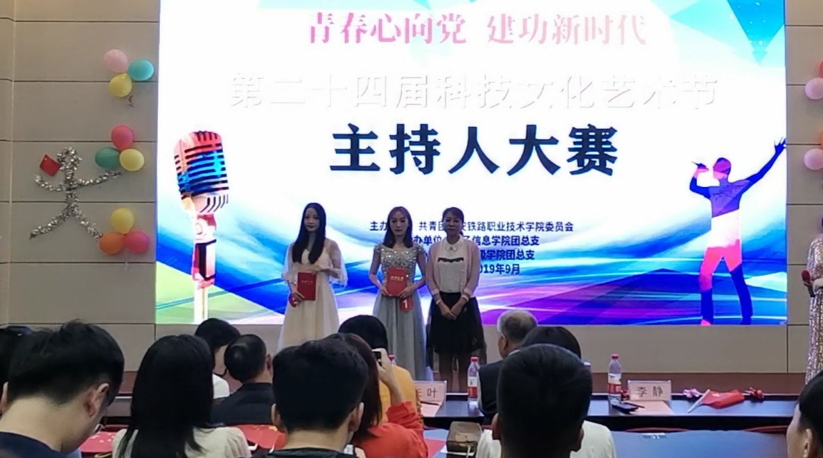 由院团委主办,电子信息学院团总支承办,各二级学院团总支协办的校园主持人大赛于9月26日在自强校区教学楼一楼阶梯教室举行。参加本次活动的有团委办公室主任朱叶、自强校区公寓管理科科长纪小平、总务科科长王焕学、自强校区图书馆主任李静、招生就业办李洁老师、电子信息学院学工办主任薛明,同时到场的还有电子信息学院班主任、各二级学院参赛选手和同学们共计300余人。
