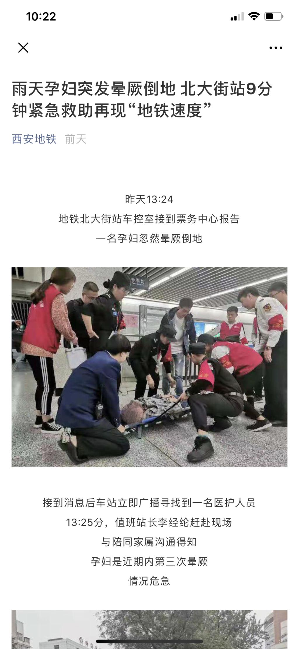 10月8日下午1点24分,西安地铁北大街站有一名孕妇突然晕厥倒地。在值班站长的带领下,ballBET贝博BB艾弗森实习生仅用9分钟将乘客安全送到医院,脱离了生命危险。