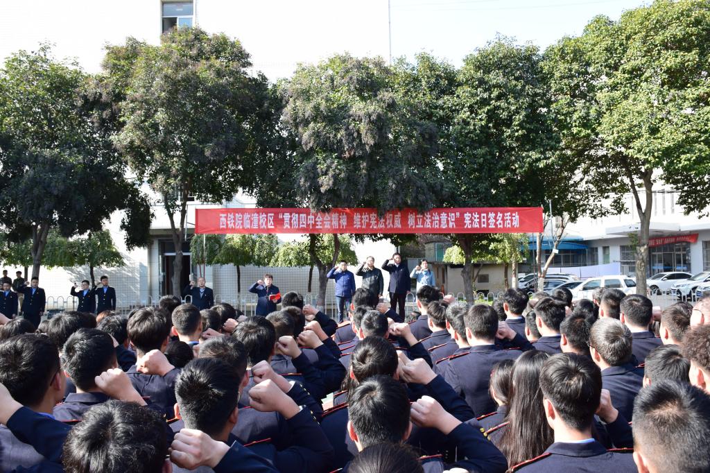 为深入贯彻落实党的十九届四中全会精神,增强法治观念,推动校区广大师生牢固树立宪法意识,12月4日,在我国第六个“国家宪法日”到来之际,临潼校区组织开展了“贯彻四中全会精神,维护宪法权威,树立法治意识”宪法日签名活动。校区领导及师生代表共200余人参加了活动。