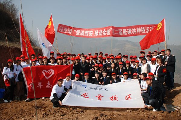 为迎接2011世界园艺博览会,提高青年学生保护自然、改善生态环境,创建园林城市意识。龙首校区团委组织青年志愿者参加了由市文明办、市环保局主办的迎世园“爱满西安绿动全城”第二届低碳林种植活动。