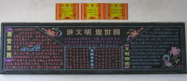 3月初,龙首校区举办以“共建文明校园、同迎世园会召开”为主题的黑板报评比活动,倡导学生践行三个文明(文明教室、文明学生、文明宿舍),共建绿色校园,同迎绿色世园会。活动中,各班级对此次活动热情很高,进行了积极的准备和认真的策划,每份黑板报作品都紧紧围绕着世园会进行设计,主题鲜明突出、文字工整清晰、版面布局合理、配图新颖多样,充分展现了学生们良好的艺术创作水平,以自己的形式积极了解世园、参与世园,为世园作出贡献。