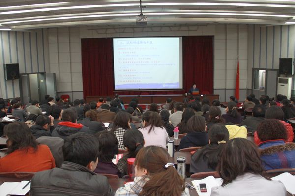 323下午,教务处邀请陕工职院教务处处长王津教授、田锋社教授来贝博官网进行学术交流,并为全院200余名专任教师举办了题为《基于工作过程系统化的课程开发与精品课程建设》与《高等职业院校国家精品课程组织管理与建设实践》的讲座。