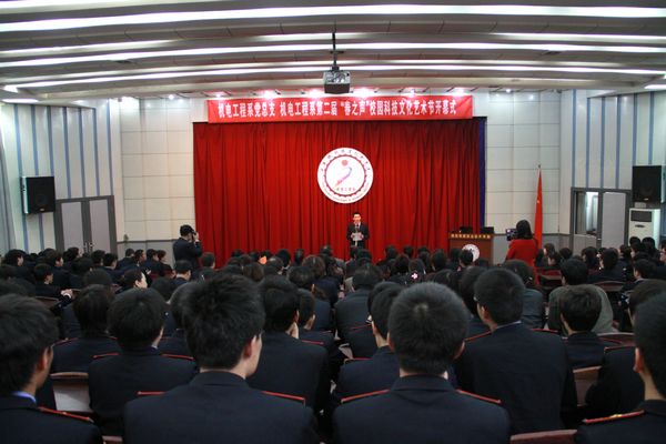 330下午,机电工程系在阶梯教室举办第二届“春之声”科技文化艺术节开幕式,院党委书记何绪生,副书记、纪委书记李长才,副院长邓耀斌及部分处室负责人,机电工程系师生代表300余人参加了开幕式。开幕式由系主任代礼前主持,党总支书记和晋秦致开幕词。