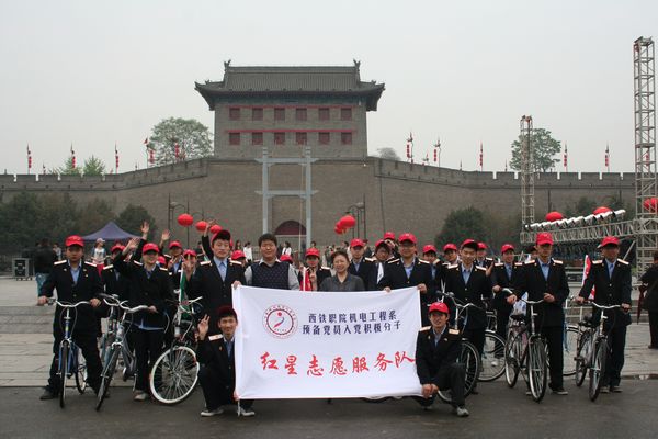 为宣传世园会“绿色 低碳”概念,4月20日下午,机电工程系党总支组织预备党员积极分子红星志愿服务队举办了“文明世园,绿色出行”自行车环城骑行活动。学生工作部部长卢进安,系主任代礼前、总支书记和晋秦及相关部门负责人参加了启动仪式。启动仪式由代礼前主持。