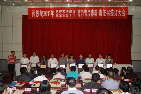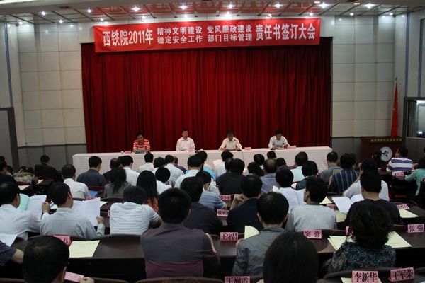 4月27日上午,学院在阶梯教室召开了2011年精神文明建设、党风廉政建设、稳定安全工作、部门目标管理责任书签订大会。学院党委书记何绪生、院长田和平,党委副书记、纪委书记李长才,副院长翁谦锁出席会议在主席台就坐,学院科级以上领导干部参加了会议。会议由何绪生同志主持。