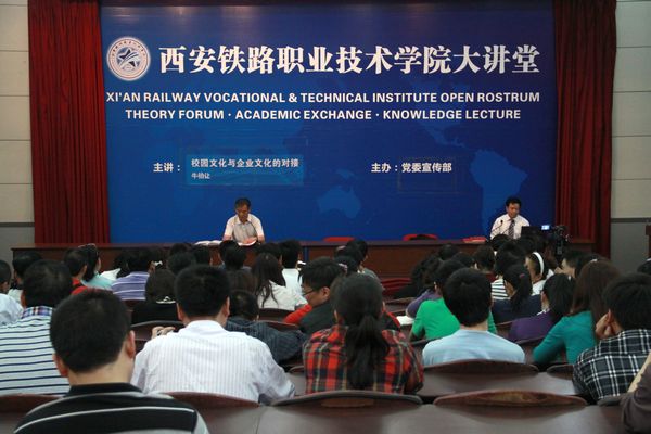 长期工作在铁路建设一线的牛伯让对文化建设具有丰富的经验与独特的见解,他结合自己多年在青藏铁路、京沪高铁工地从事采访报道工作的丰富经历,对校园文化与企业文化的对接进行了精彩的阐述,广大师生对讲座给予了高度评价。