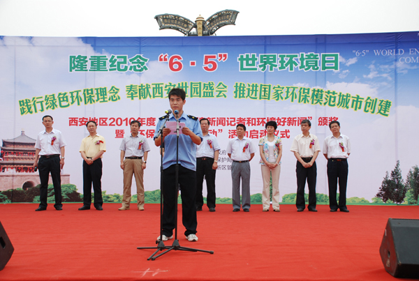在活动现场,西安市环保局副局长任永凤总结了近年来西安市在环境保护中所取得的成绩,号召全市上下积极行动起来,积极参与环保,奉献西安世园会,建设绿色、和谐的国际化大都市。同时宣读了2010年度为西安环境工作做出积极贡献的优秀环境新闻记者和环境好新闻的作者名单。贝博官网环保志愿者协会代表白力强同学上台代表全市环保志愿者宣读了“践行绿色理念,积极推进环保”倡议书,倡议全市环保志愿者和广大市民进一步行动起来,以更高的工作热情,更强的责任心,更崭新的精神风貌,用实际行动为保护环境做出积极努力。