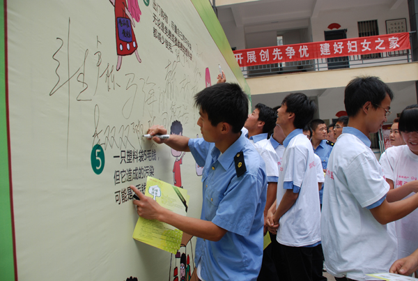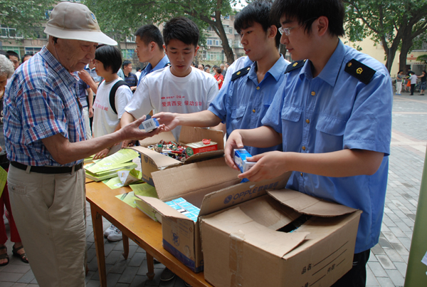 启动仪式后,贝博官网环保志愿者来到雁塔区红专南路社区向社区群众宣传绿色环保理念,并发放低碳语录手册和低碳用品(节能灯),社区广大群众积极行动起来,自发的将收集好的废旧电池放到环保箱内。活动结束时,志愿者们与社区群众分别在低碳广告牌上签名、合影留念!