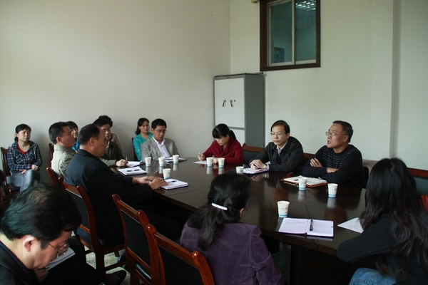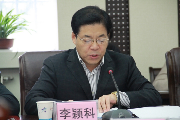 市教育局党委书记、局长李颖科汇报工作。他从学院筹建、发展和市政府的关心支持等方面作了汇报。