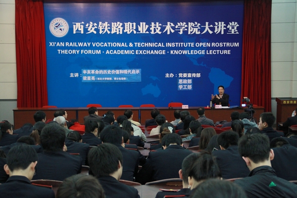 本次报告会是学院纪念辛亥革命100周年活动内容之一,也是今年形势政策教育的一项重点工作。学院部分党总支书记、部门负责人及学生代表三百余人在现场听取了报告,院本部六千余名学生在教室收看了实况转播。