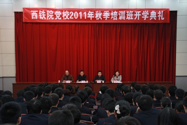 党委副书记、纪委书记党校校长黄家昌,分党校校长张伟敏、李培新、张爱民、和晋秦及党办主任张家琪、学生工作部部长卢进安、辅导办主任兼学生工作党支部书记王智敏等同志分别出席了开学典礼。开学典礼上各分党校校长宣读了西铁院党校《学员管理办法》和2011年秋季培训班课程安排。