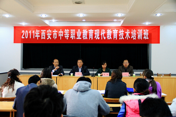 学院副院长邓耀斌、西安市教育局师资培训处董梅、临潼校区主任任治军、现代教育技术中心主任黄小明出席开班仪式。学院副院长邓耀斌做了重要讲话,他介绍了西安市教育局中职培训的计划和安排,对参训学员提出了具体要求,鼓励大家通过培训提高运用现代教育技术能力,同时希望参训学员将培训内容传授给未参训的广大教师,为推进中职教育教学改革发挥各自的优势。