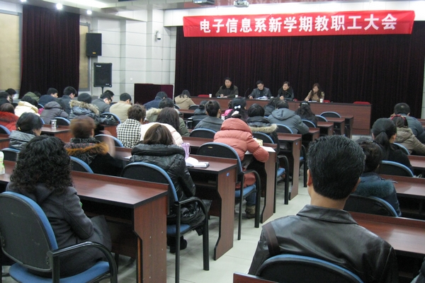 召开新学期教职工大会,明确了新学期的工作目标,鼓舞了全系教职工的工作热情,电子信息系全体教职工将团结奋进,努力工作,确保全年工作有序开展。