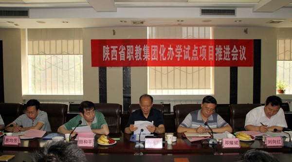 5月17日上午,学院召开陕西省集团化办学试点项目推进会议,进一步推动由学院牵头承担的“探索规范化的学生企业实习管理模式”和“校企一体开发教材的新机制”两个子项目试点任务的研究。参加会议的有:省教育厅职成处惠均芳,集团化办学项目办公室刘向红、陈会玲,西铁院院长田和平、副院长邓耀斌,西航职院副院长李永刚,杨凌职业技术学院、西安航空职业技术学院、陕西省经贸学校、西安旅游职业中等专业学校、神木职教中心、靖边职教中心共6所项目试点参与院校主要领导,西铁院科研处处长滕勇,教务处处长杨扩武等相关部门主要领导和各系部主任。会议由邓耀斌主持。
