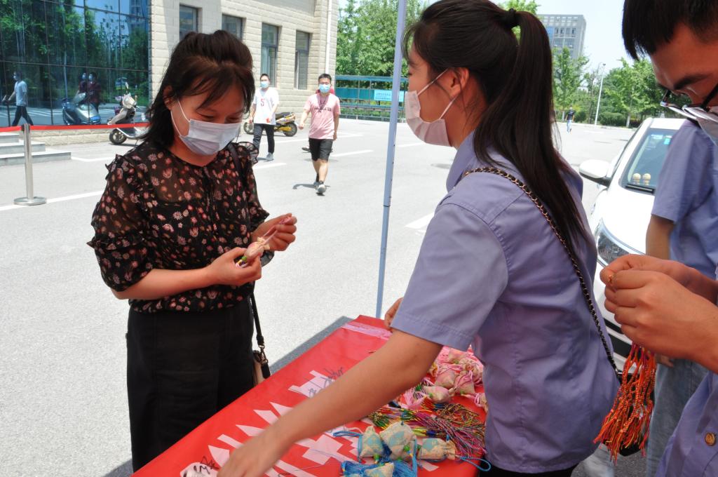 活动现场气氛热烈,同学们向过往师生发放精心设计的关于端午节传统文化知识的宣传单,通过介绍端午节的由来、纪念屈原说、端午节民俗活动与端午节知识小百科,进一步提升同学们对我国传统文化节日的了解与对中国传统文化的认同感。同学们为过往师生们送上象征着吉祥安康的五彩绳和香包,并邀请师生在横幅上写下自己的签名,为大家送上端午安康的祝福。活动最后,同学们朗诵了《史记·屈原列传》节选,向这位伟大爱国诗人表达了缅怀与追念,再现了屈原的拳拳爱国心,弘扬了热爱祖国、热爱人民的伟大爱国主义精神。