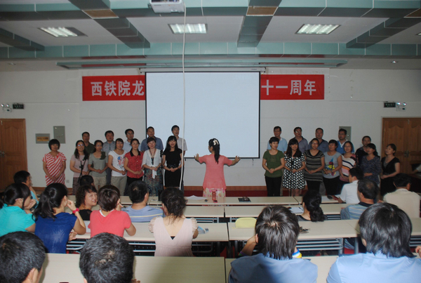 临潼校区在实验楼五楼阶梯教室举办了庆祝建党91周年暨“迎接十八大 永远跟党走”诗歌朗诵会,师生代表以一场主题鲜明、内涵丰富、情感深蕴的朗诵会为建党91周年献礼,也为学院发展前进的主旋律增添了动听的音符。选手们朗诵了《四点零八分的北京》、《母亲河畅想》、《我们不会忘记》、《我的南方和北方》、《苍穹下的唐古拉》和《喊故乡》等十一首经典红色诗歌,赢得了师生们阵阵掌声。