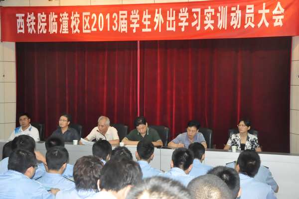 7月4日下午,临潼校区在实验楼五楼多媒体教室召开了校区2013届学生到西安铁路局安康培训中心学习实训动员大会, 2013届铁道工程和高速铁道工程专业签约学生144人将赴安康进行为期一个学期的实习。会议由校区副主任赵景民主持,校区领导班子成员、学生科、教务科负责人、专职辅导员、班主任出席动员大会。