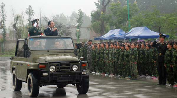 安文中在阅兵总指挥李志余的陪同下,乘车检阅了新生军训队伍。
