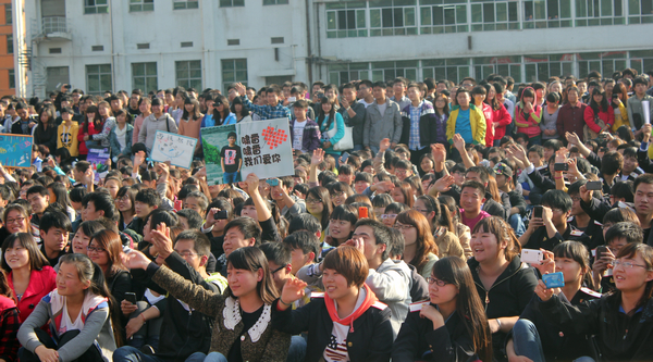 10月24日下午,陕西电视台《都市女孩》栏目“进高校”活动进驻贝博官网,在院本部操场举行了盛大活动。该活动作为首场表演为贝博官网“国家,青年,责任,十八大”主题社团活动月拉开了帷幕。陕西电视台《都市女孩》栏目组四位优秀主持人——石头、皮皮、翔子、啸雷共同主持了本次活动,学院29个社团的成员及院本部学生2000多人现场参与了活动。