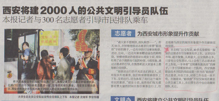 相关报道:本次“排队推广日”志愿者活动,贝博官网龙首校区志愿者周晨同学受到了西安三秦都市报的采访报道。(2012年11月12日三秦都市报 A8版)