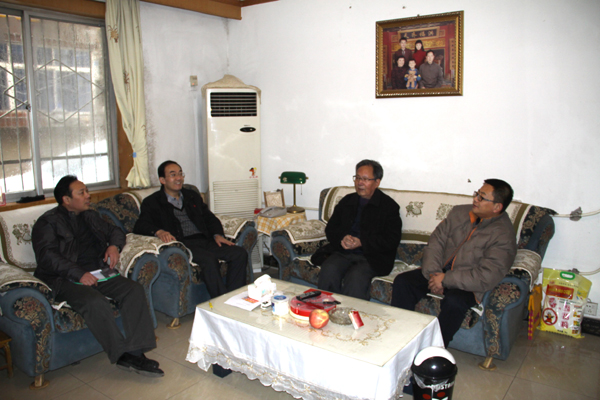 2013年春节前,学院党委书记安文中、院长田和平、党委副书记、纪委书记黄家昌、副院长邓耀斌、翁谦锁等在相关部门负责人陪同下,于2013年1月11日至1月15日分赴南郊、西郊、北郊、临潼等地家属院,对部分离退休老红军、老领导和困难党员共21人进行了走访慰问,送去了学院的温暖、关怀和祝福。