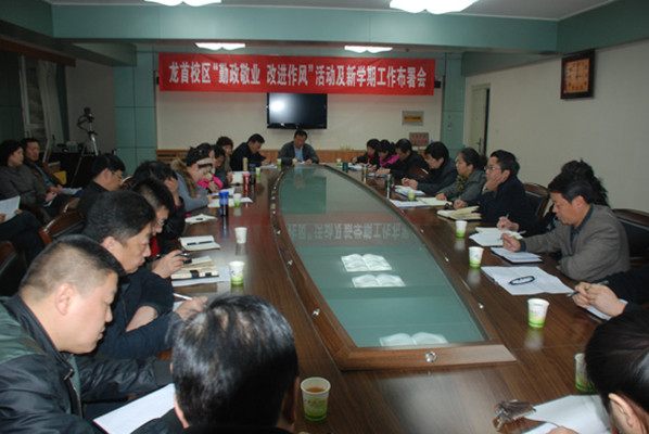 根据学院2月28日“勤政敬业、改进作风”集中教育整顿活动学习动员会议精神,龙首校区结合实际,于3月1日下午召开科级以上干部会议,传达有关文件和会议内容,部署新学期开学初工作。