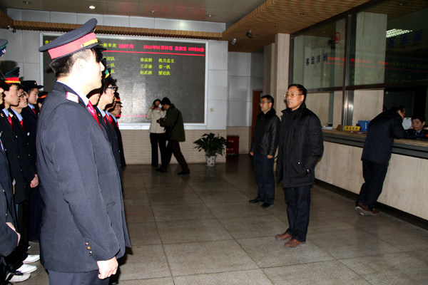 在客运段报到大厅,邓耀斌在西安铁路局客运段段长吕岳、副段长朱必荣的陪同下看望了部分前来报到、即将出乘的学生,向学生提出了三点希望,希望他们在参加跑车的过程中,一是圆满完成工作任务,二是在列车这个小社会里历练性格,三是利用本次实习机会,增长社会见识,培养工作技能,以便将来更快地适应工作岗位。朱必荣也对出乘学生提出了具体要求,要求学生在乘务岗位上,善待自己,善待乘客,安心工作。他表示,铁路局将会为学生全力做好后勤保障工作。