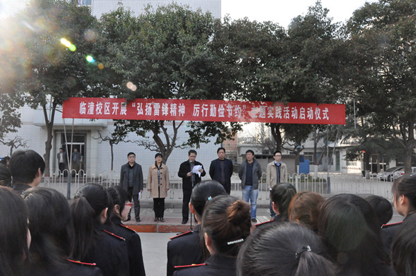 3月5日下午,临潼校区在北操场召开了“弘扬雷锋精神,厉行勤俭节约”主题实践活动动员大会。校区主任熊奇、党总支书记张国邦、副主任王秀丽、吴西蒙、团委副书记蒋博文及班主任、辅导员和校区学生参加了大会,会议由校区学工部主任朱栋夫主持。