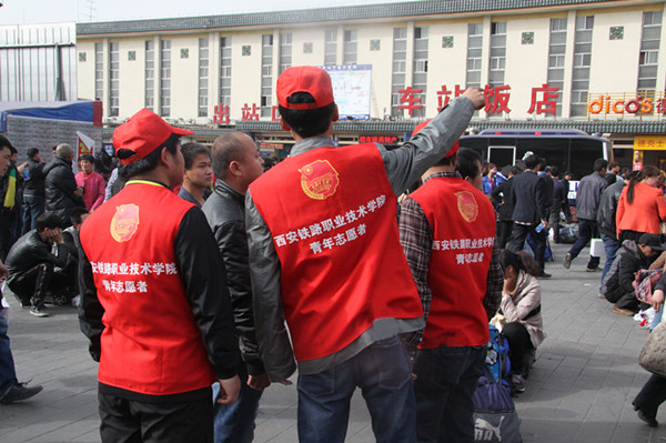 3月5日下午,院本部志愿者分两队前往北关十字、西安火车站开展志愿服务活动。红色的马甲,自信的微笑,充分展现了西铁院青年良好的精神风貌。