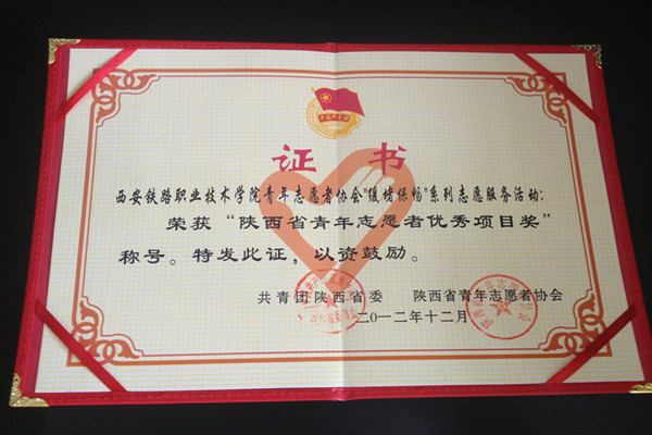 2012年学院团委在上级团组织、学院党委的带领下,以党的十八大精神和团的十六大精神为指导,深入贯彻落实科学发展观,积极响应党的号召,全面完成了2012年学院共青团的各项工作,并且在坚持不懈的努力下荣获2012年陕西省学校共青团工作优秀单位,贝博官网党委副书记、纪委书记黄家昌获得“支持共青团工作好书记”荣誉奖杯,同时,由青年志愿者协会坚持开展的“缓堵保畅”系列志愿服务活动获得了“陕西省青年志愿者优秀项目奖”。