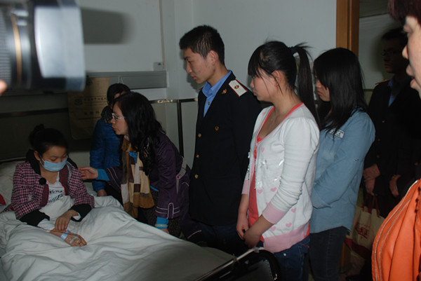 早在二月底的时候,贝博官网321434班学生陈璐、赖书香在华商论坛上看到了一则写着《佛坪正能量,救助吕茜行动》的帖子,因为同是汉中人,所以开学报到后,就到医院看望了吕茜,得知她家境贫困,医药费全靠社会捐助时,回校后便发动身边的同学一起捐钱、捐物,其中322831班的李飞同学还一次性捐献了400cc的血小板。当学工办接到吕茜家长送来的感谢信时才获知此事,于是辅导员们纷纷奉献爱心,当时就将1300元善款交给家长。